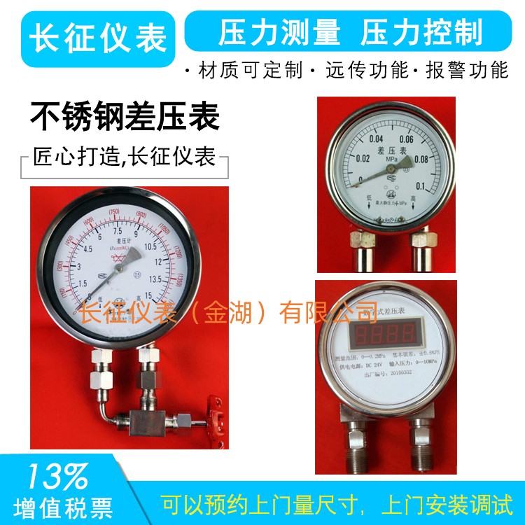 不銹鋼差壓表結(jié)構(gòu)全部采用不銹鋼制成,其中的測量系統(tǒng)(雙波紋管及連接部件)、