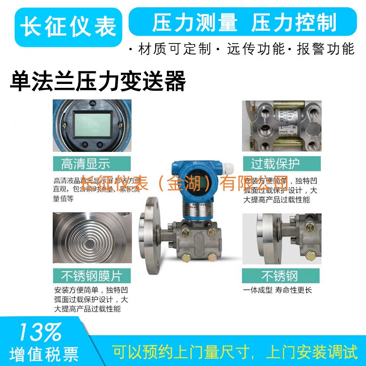 單法蘭壓力變送器是采用國外隔離式電容傳感器,由我廠開發(fā)研制的一種耐鹽酸、硫酸、氨水、硝酸、NaOH等強酸強堿腐蝕的新型壓力變送器。